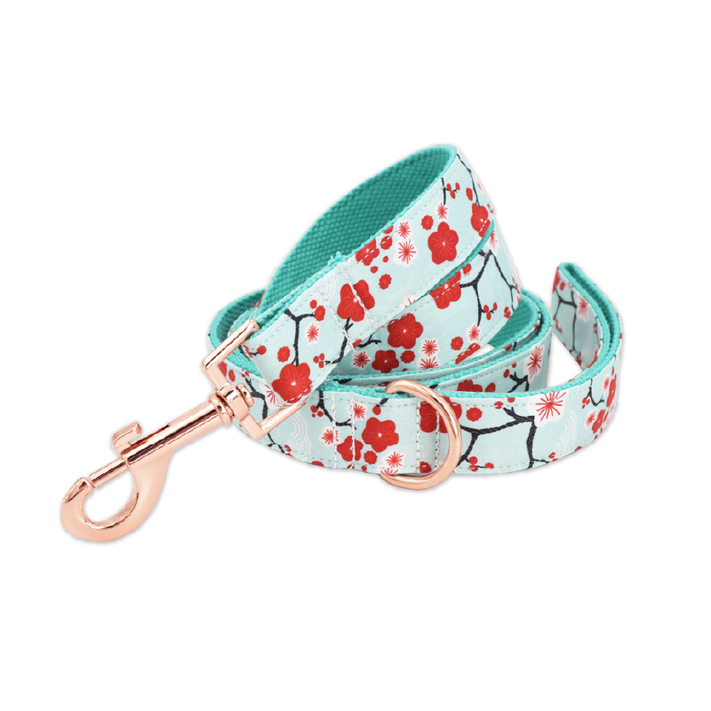 Organic cotton webbing with hand printed fabric hand stitched on top to create the most natural and stylish leash around.