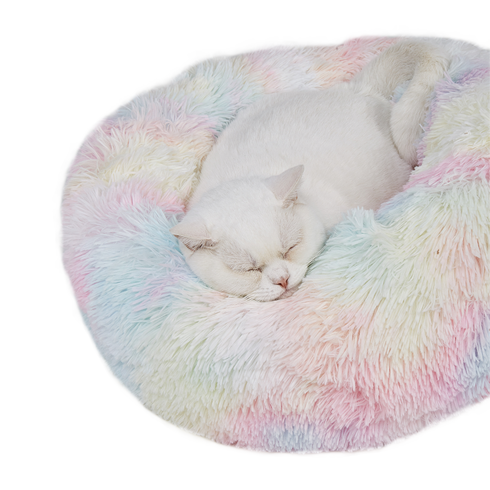 Introducing the FOFOS Tie Dye Soft Donut Pet Bed – the ultimate cozy retreat for your furry friend! With its plush design and vibrant tie-dye patterns, this bed offers both style and comfort. The bolstered edge provides support for your pet’s head and neck, while the spacious interior allows for various sleeping positions.