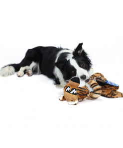 The FOFOS Tiger Jumbo Skinnez Dog Toy is made to keep your pooch busy through out the day. This durable and unique plush dog toy features a soft head filled with crinkle paper and a body without any stuffing. The smooth body can?t be easily torn apart by your puppy while the crinkle paper adds extra excitement.