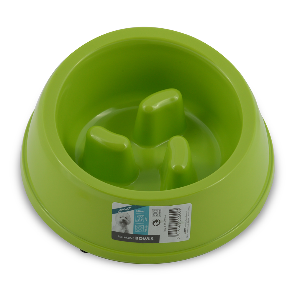 M-PETS Melamine High Back Slow Down Bowl Green 450ml