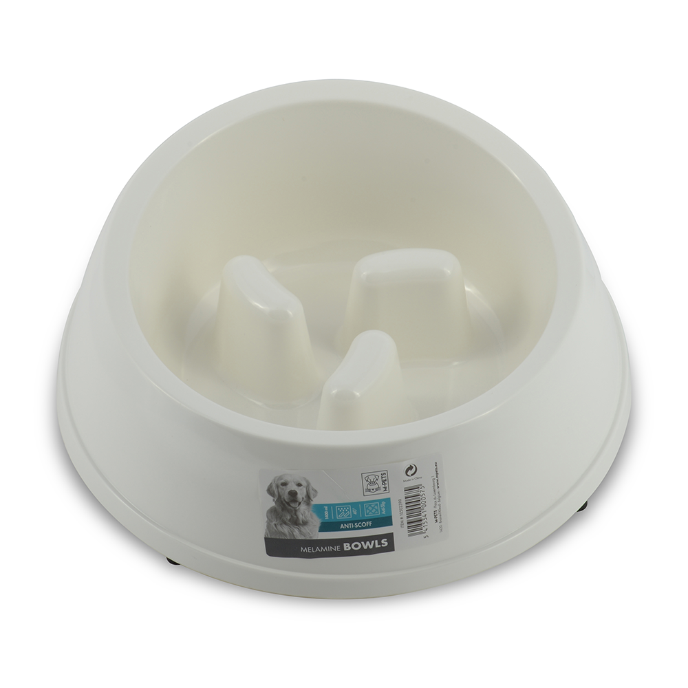 M-PETS Melamine High Back Slow Down Bowl White 1400ml