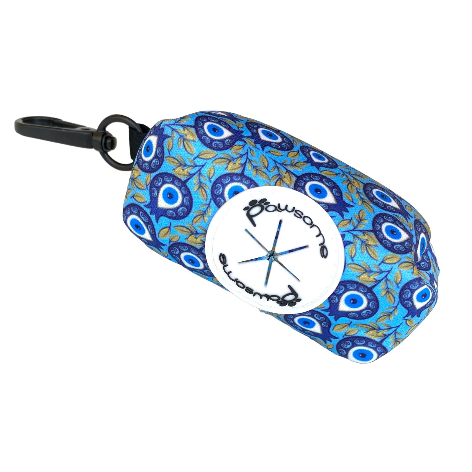 Poo Bag holder, with a pomegranate and Turkish eye design in blue brings to mind a beautiful and meaningful ensemble for your canine companion. The collar, leash, and harness could feature intricate patterns inspired by the pomegranate, symbolizing abundance, fertility, and protection, along with the Turkish eye motif in shades of blue for an extra layer of symbolism.