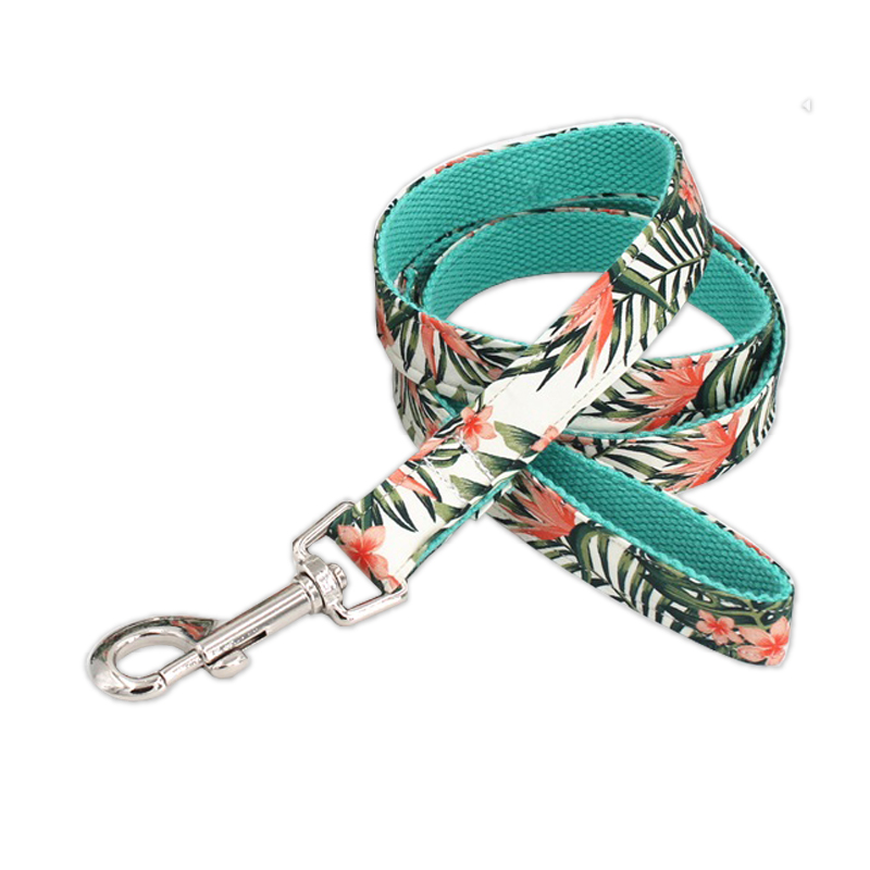 Organic cotton webbing with hand printed fabric hand stitched on top to create the most natural and stylish leash around.